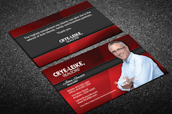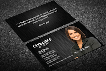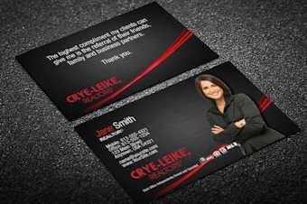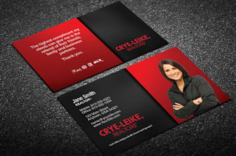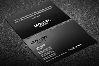 Realty Cards offers a dozens of possibilities when it comes to designing a Crye-Leike real estate agent business card. Whether you are a real estate agent or broker, the one thing that separates you from your competition is the creative Crye-Leike real estate business card designs. Choose from dozens of Crye-Leike real estate business card templates above, and we guarantee that you will not be disappointed!